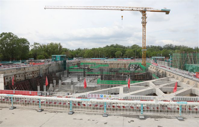 項目所處海淀西山區(qū)域地下水資源豐富,工地又緊鄰海淀公園景觀湖,基坑下含有三層承壓水,此外,項目距離運行中的地鐵16號線最近處只有6.9米,需要保障地鐵線路安全運行,對此,項目技術(shù)團隊進(jìn)行了細(xì)致研究,綜合考慮效果和成本,研究出了比全部采用常規(guī)方法節(jié)省半個月工期的方法。