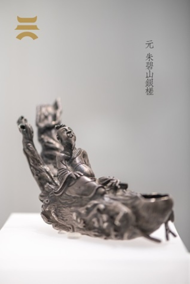 這件珍品的作者是元代著名的鑄銀工匠朱碧山,字華玉,元嘉興路嘉興縣人。他是制造槎杯的能工巧匠,所鑄的蝦杯、人物杯等酒器具形象生動、技藝精湛,具有極高的工藝價值,引發(fā)當(dāng)時名流之士的追捧。如今,朱碧山的作品被故宮博物院、美國克里夫蘭博物館等珍藏。