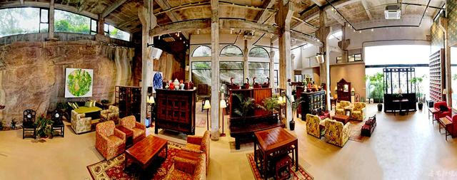 維波樓8號館的工作人員向記者講述了該館的故事。有一位美國博物館館長哈維先生,在深受中國民間家具藝術的感染后,與他的妻子姚小波老師,花了33年時間在中國各處收藏舊家具,對它們進行修復、翻新、二次創(chuàng)作。并開設了多家維波樓博物館,用來展示這些年來他們的成品。在一次機緣巧合下,九灃時尚企業(yè)董事長王倍林女士接觸到該家具文化后,深受感觸,向哈維夫婦收藏了大量家具,最終在石樓鎮(zhèn)蓮花山開設了維波樓8號館。“說起選址,王倍林費盡了心思,她找了很多處地方都覺得不合適,直至來到蓮花山腳下。