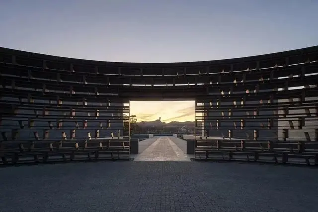 承德博物館因位于古建筑群中,建筑限高7米,因此建造時(shí)地基整體下挖了約6米,下沉式庭院如同新的“地面”“藏”在環(huán)境之中,庭院邊緣結(jié)合當(dāng)?shù)毓沤ㄖ谐R?jiàn)的臺(tái)基形式,做了層層跌落的臺(tái)地。