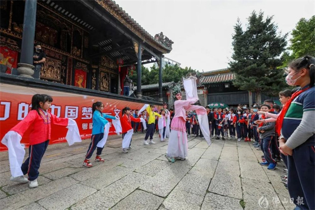 佛山市第一小學學生在萬福臺與粵劇演員互動學習。