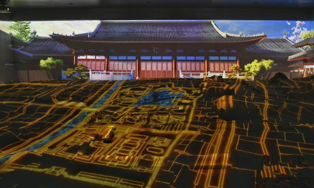 南宋德壽宮遺址博物館內(nèi)以動(dòng)畫和投影展示的歷史模擬影像