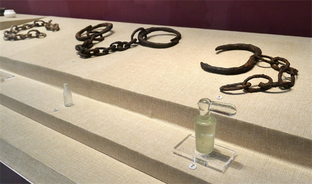 15日,“南石頭往事”展覽在南漢二陵博物館開(kāi)幕,南石頭監(jiān)獄遺址考古發(fā)現(xiàn)的腳鐐、藥劑瓶等一批出土文物首次面向公眾展出。