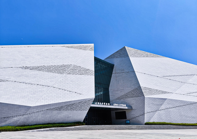 博物館的植物群象征著四川農(nóng)業(yè)傳統(tǒng)的豐富色彩,將現(xiàn)代農(nóng)業(yè)產(chǎn)業(yè)的光環(huán)帶入城市。倒影池和水路象征著岷江和東風(fēng)渠。景觀設(shè)計(jì)反映了復(fù)雜的四川地形和植物世界的多樣性。博物館的建筑材料也采用了四川本地典型的石材,外部紋理質(zhì)感與石材的天然沉積特征相一致。石材表面有機(jī)地增加透光孔,在白天就好似山頂?shù)陌}皚白雪,在夜晚就好似點(diǎn)點(diǎn)繁星,象征天體和地質(zhì)存在的演變。