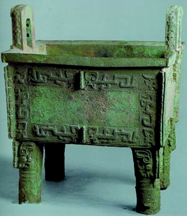 商代是中國(guó)青銅時(shí)代的第二個(gè)王朝,與世界上的其他文明古國(guó)相比較,殷墟的青銅文化有著鮮明的中國(guó)特色,以青銅禮器為基礎(chǔ),發(fā)展成為一套以等級(jí)為核心的禮制制度,在中國(guó)延續(xù)了數(shù)千年,這在世界青銅文明中是絕無(wú)僅有的,體現(xiàn)出獨(dú)特的東方色彩。殷墟出土青銅器種類(lèi)繁多,器形厚重,紋飾繁縟,鑄造工藝高超,達(dá)到了前所未有的水平。其中尤以王陵遺址出土的司母戊大鼎最負(fù)盛名,大鼎高達(dá)133厘米,器口長(zhǎng)79.2厘米,重量達(dá)875公斤,它是至今世界上發(fā)現(xiàn)最大的青銅器,代表了中國(guó)古代青銅文化的最高水平。原件現(xiàn)藏中國(guó)國(guó)家博物館,此鼎造型龐大雄渾,紋飾精美細(xì)膩,通體以雷紋為底紋,饕餮紋、夔紋為主體裝飾,給人以穩(wěn)重、莊嚴(yán)而又神秘的感覺(jué),是古代科技與藝術(shù)、雕塑與繪畫(huà)的完美結(jié)合,是中國(guó)青銅器文化中的瑰寶,美術(shù)史上的璀璨明珠。